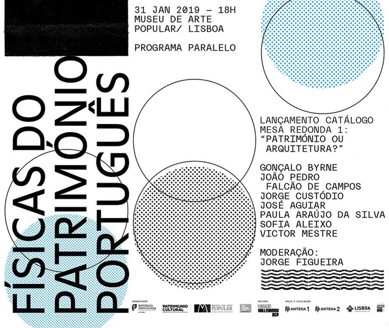 Primeira sessão do Programa Paralelo da exposição “Físicas do Património Português. Arquitetura e Memória”. A sessão conta com o lançamento do catálogo da exposição e a Mesa redonda “Património ou Arquitectura?”, que se foca na polémica relação entre a cultura patrimonial e a cultura arquitetónica. Os oradores convidados são Gonçalo Byrne, João Pedro Falcão de Campos, José Aguiar, Jorge Custódio, Paula Araújo da Silva, Victor Mestre e Sofia Aleixo.A moderação ficará a cargo de Jorge Figueira, curador da exposição.